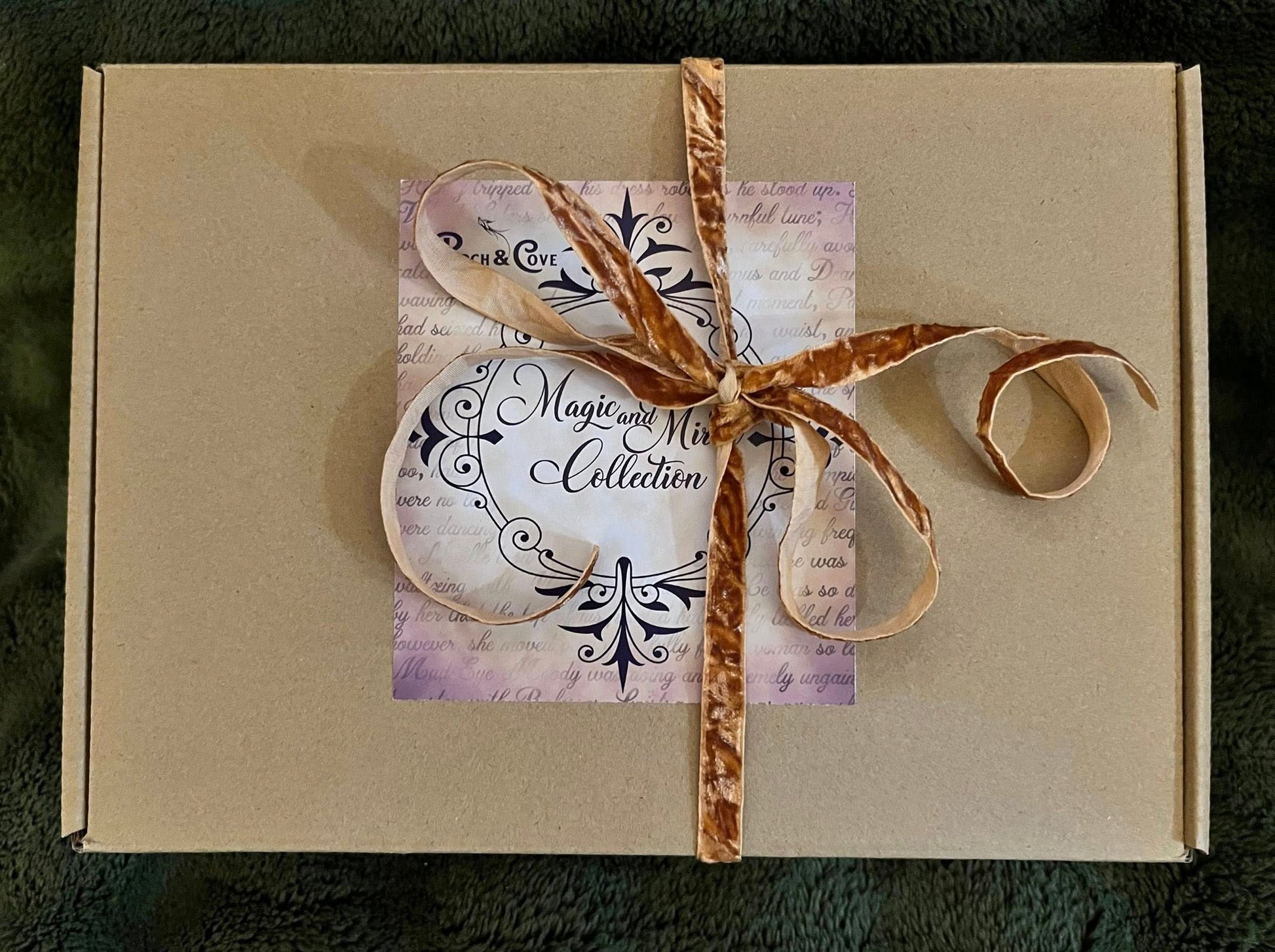 *Magic and Mirth collection of two 8oz candles, one owl figurine, and one scroll in a gift box. Please Note: Box ribbon and owl style may vary per order.